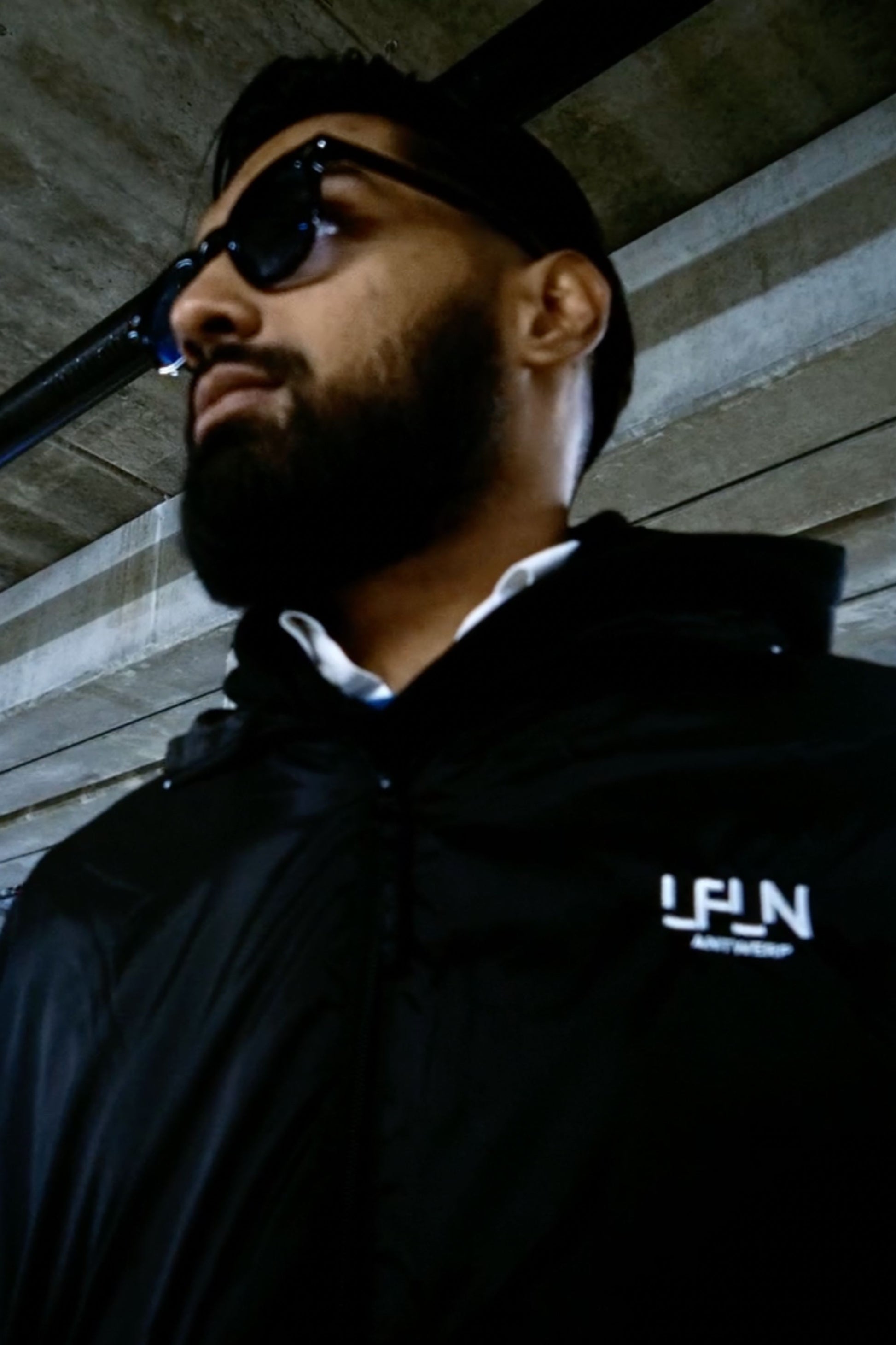 - Hood with a drawstring, zipped closure, elastic cuffs and hem